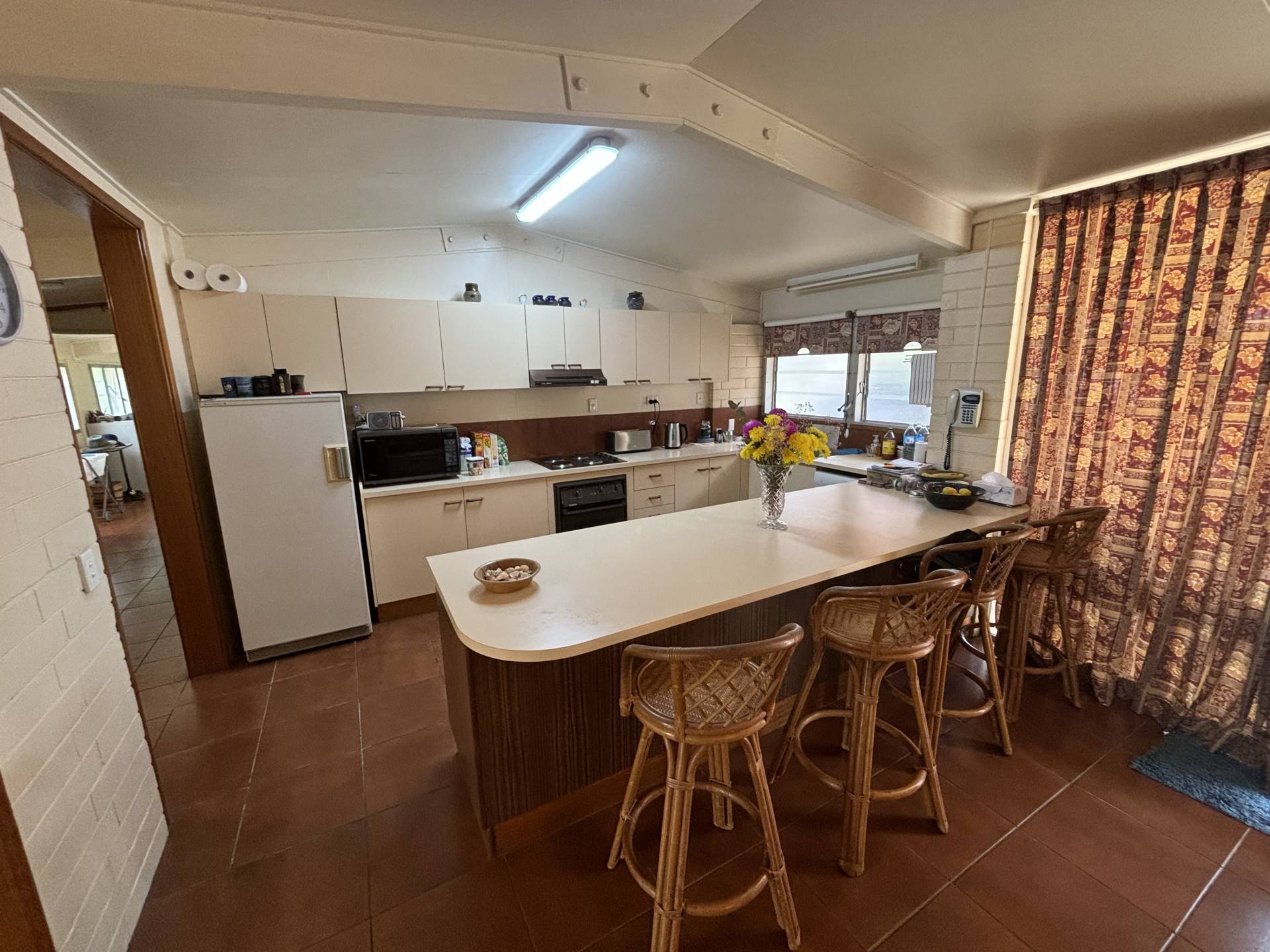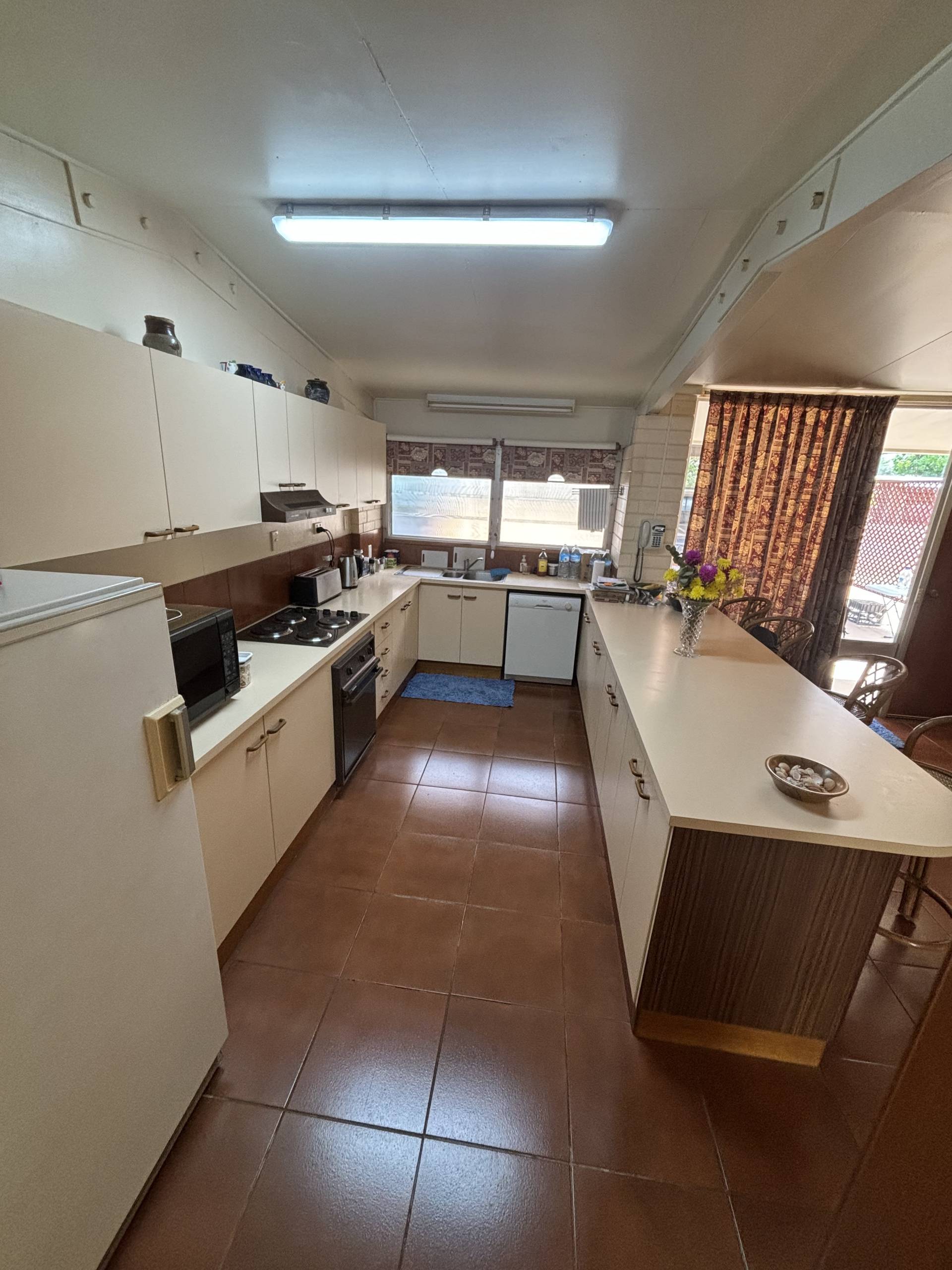 • The main living area is open planned and tiled, kitchen with plenty of storage space and dishwasher.