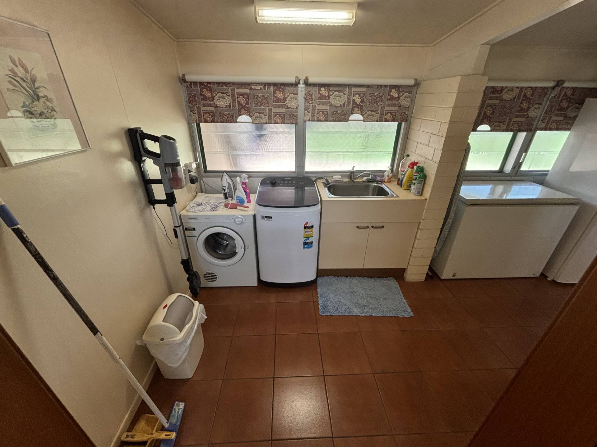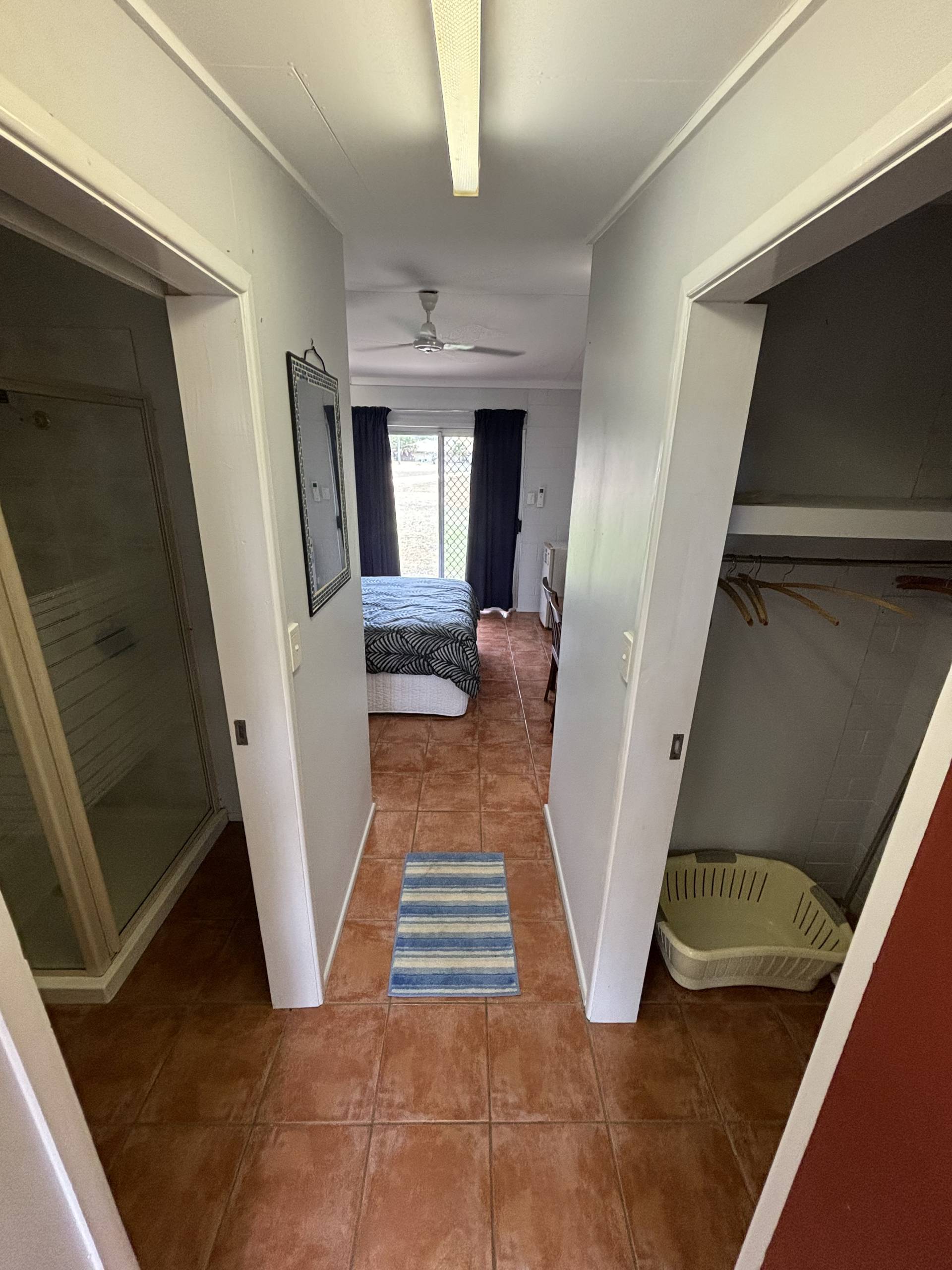 • The Laundry is located inside at the beginning of the hallway, which has been extended